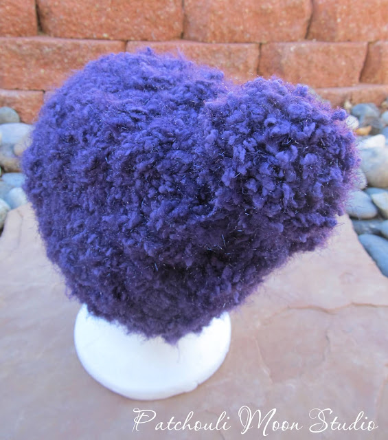 | I knit this hat using knitting needles. It was a cable knit hat, but because this is a bulky weight yarn that was very soft and fuzzy, the cable stitches really didn't show up. I knew better, but I guess I wanted to knit this hat anyway. |
