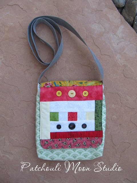 All of these flaps first started as a quilt block. Then I added strips and buttons to them.